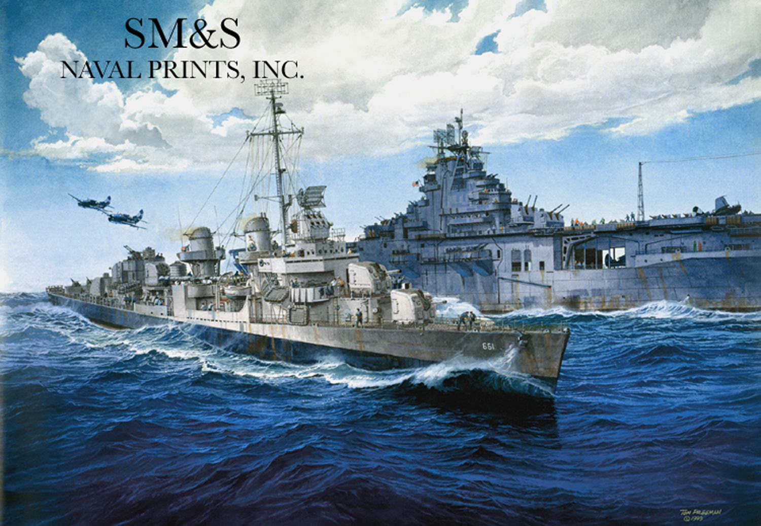 U.S.S. Kidd alongside the carrier U.S.S. Essex, March 1945.
