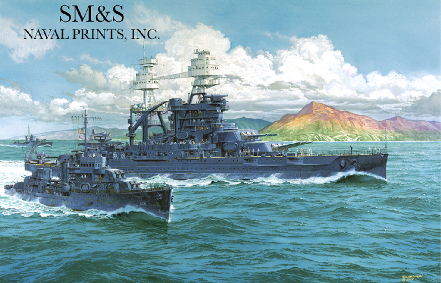 U.S.S. Arizona passes Diamond Head on November 28, 1941. U.S.S. Phelps (DD-360) is the escort.