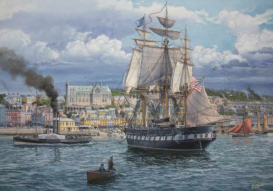U.S.S. Constellation bring relief supplies for the victims of the Irish famine of 1880.