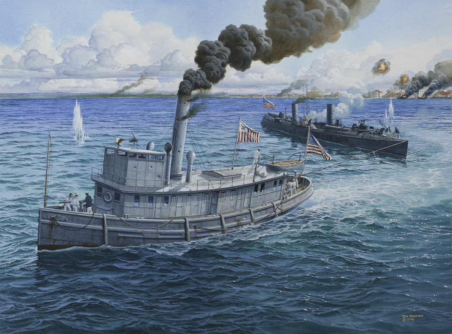 U.S.R.C. Hudson provides aid to the U.S.S. Winslow from Cardenas Harbor, Cuba, 1898